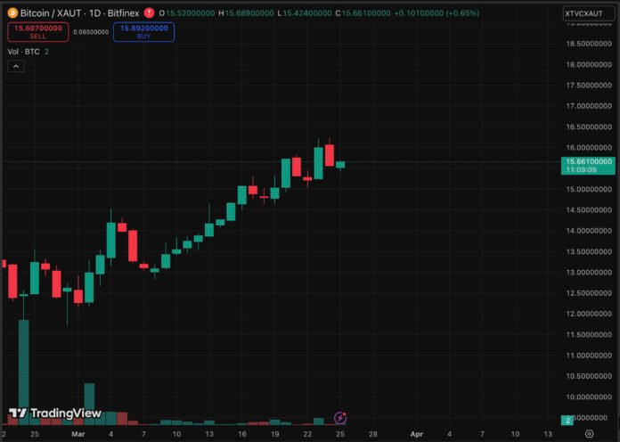 While gold suffers its worst losing streak since February 1920, plummeting for 10 consecutive days, the BTC USD price is consolidating its dominance as the premier alternative asset. Since the start of the Middle East conflict, the Bitcoin-to-gold ratio has surged roughly 30%, with the digital asset currently holding the $70,000 line despite macro headwinds.