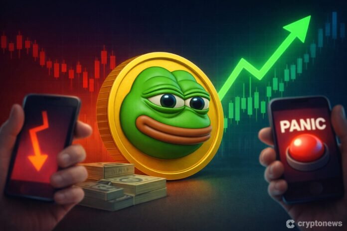 PEPE price is consolidating in what on-chain analysts are calling a historic demand zone, against an all-time high of $0.00002803 set in December 2024, meaning the token is still trading roughly 54% below peak.