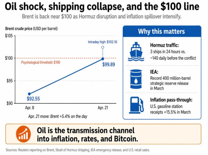 The bullish case becomes concrete if Brent stays near $100, Hormuz stays impaired, yields hold elevated, and Bitcoin nonetheless holds flat or firms around $78,000 while equities and gold stay under pressure.